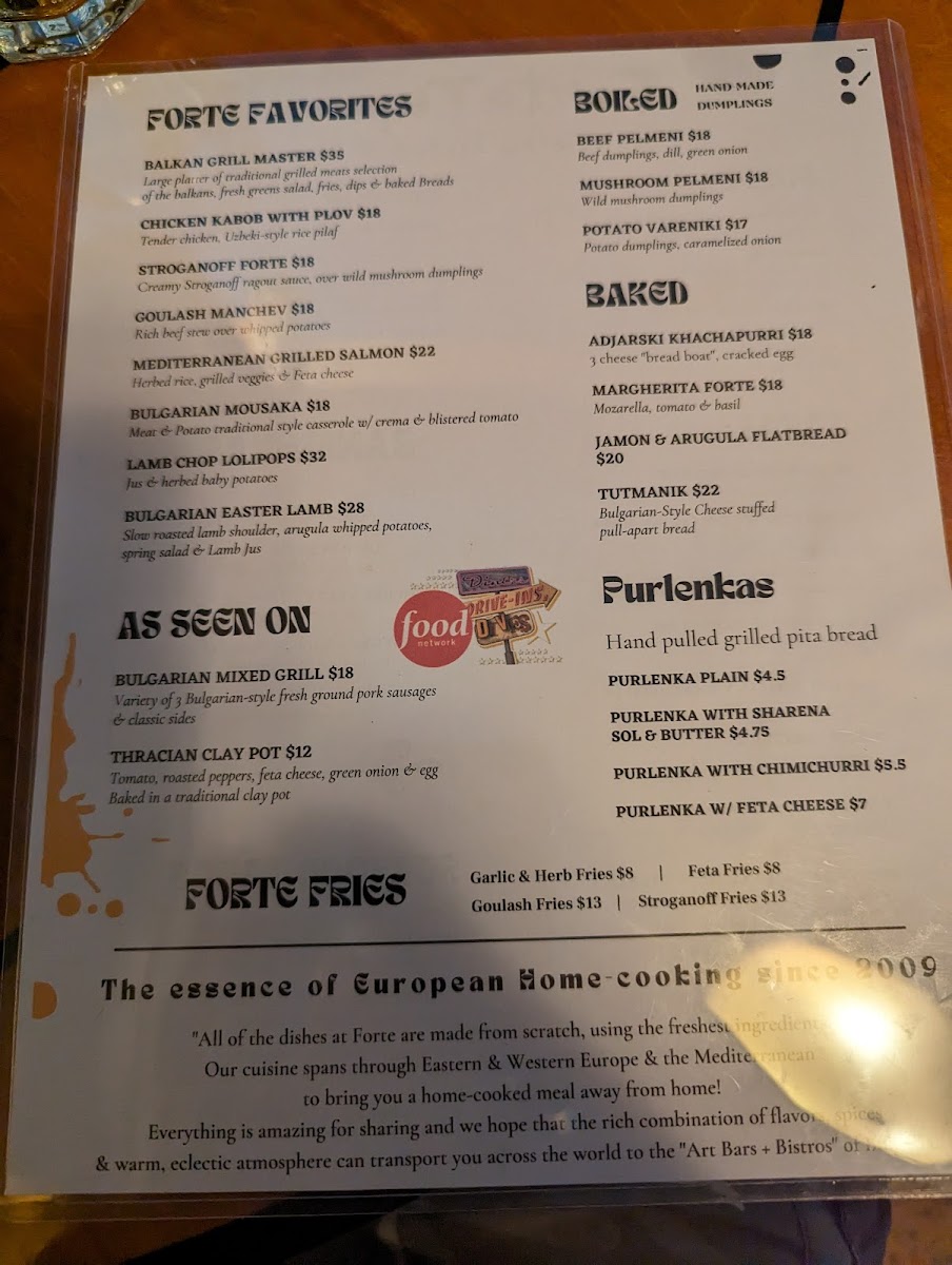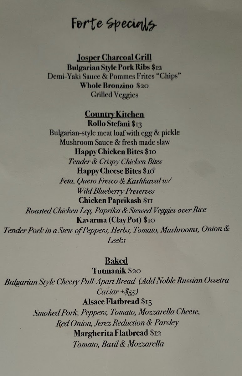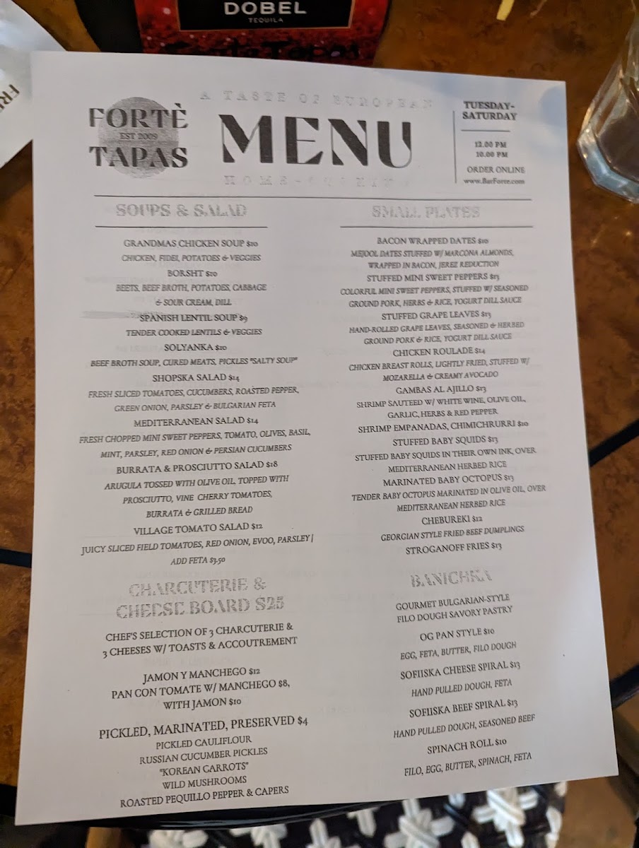 Forte Tapas Menu